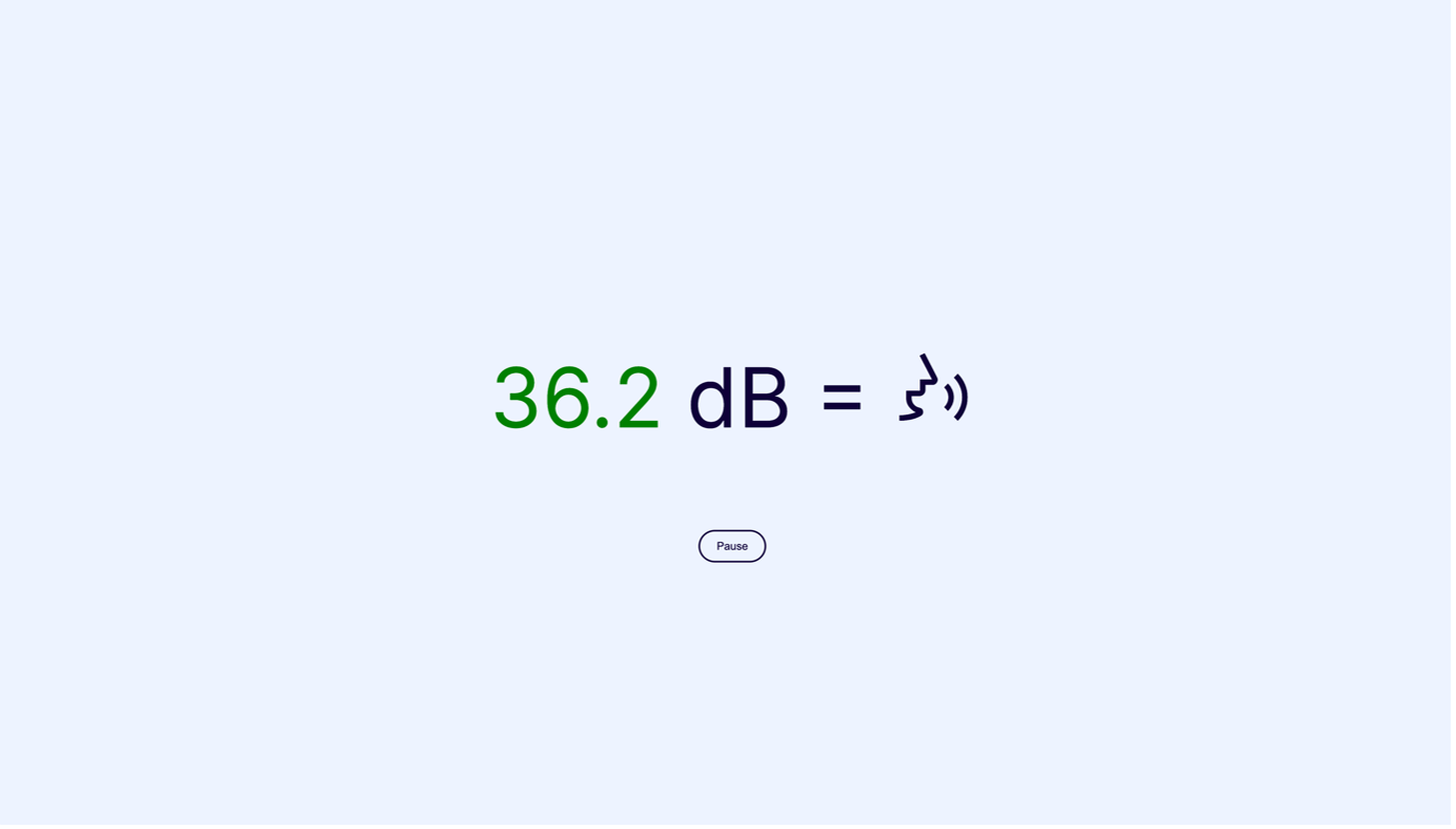 I created the live decibel meter based on the decibel meter I found on soundmeter.online. It uses the built-in microphone to measure the sound. The measured value is displayed large in the centre of the screen the numbers are indicated with the same colours as in the Noice Control app. (Green for good, Yellow for attention, red for harmful). It also displays the same icon as in the app to which the decibel level equals.